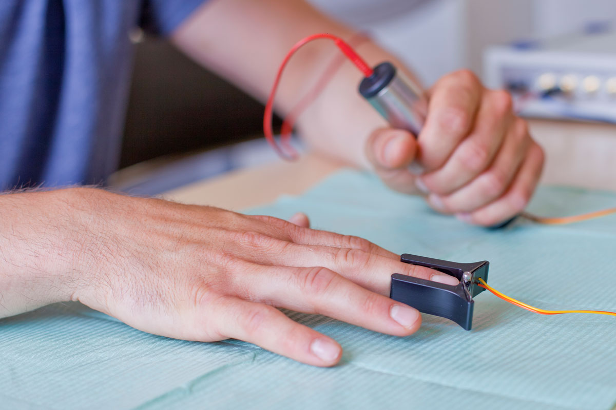 I stopnia F-SCAN, którą wykorzystujemy w naszym gabinecie. To nieinwazyjne badanie elektrodermalne (elektrody umieszcza się na skórze, w dłoniach, w miejscach zwanych punktami elektromotorycznymi) umożliwia zidentyfikowanie nawet najmniejszych wahań elektromagnetycznych pól w strukturach biologicznych żywego organizmu i w związku z tym sprecyzowanie jakie pasożyty, grzyby, bakterie mogą znajdować się w naszym organizmie lub wskazać ekspozycję, która zostawiła ślad w organizmie